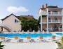 В принципе для отдыха все есть, но до пляжа далеко, до моря 300 метров(да так и есть, но там промзона все огорожено колючей проволокой,выйти можно через дыры в заборе, но не покупаешся). Бассейн большой, но вода не подогревается ( для детей это минус)Ещё есть один момент,одним из важных критериев выбора этого места было включение питания( готовить на отдыхе не очень хочется))), так вот по приезду нам сообщили, что все поменялось,теперь предлагается столовая, так вот ужин на четверых в этой столовой нам обошёлся в два раза дороже чем обед( салат,первое,второе,компот,десерт) в столовке на пляже, поэтому завтраки, ужины готовили сами, а обедали на пляже в столовой,а в общем романтично каждое утро будил петух( прям как у бабушки в деревне)