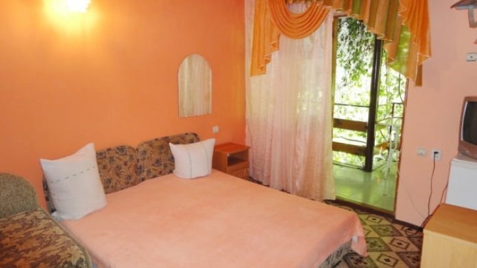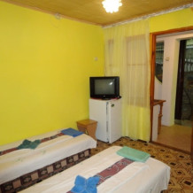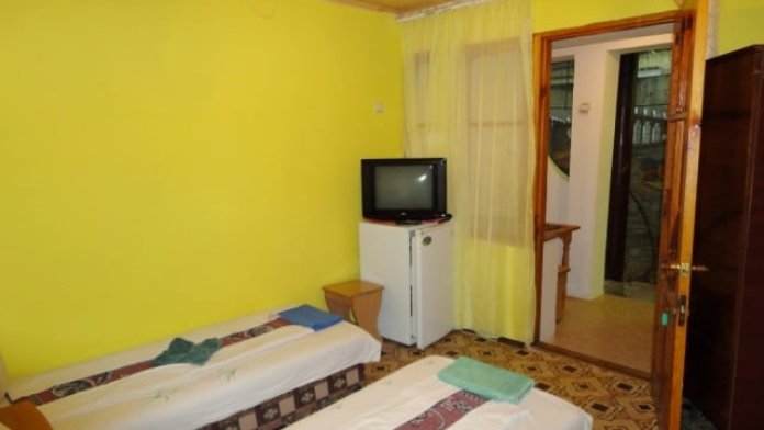 В комнате две раздельные кровати (можно сдвинуть в одну двуспальную), холодильник, кондиционер, телевизор, душ, рукомойник. У входа в комнату свой столик со стульями.