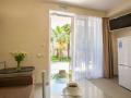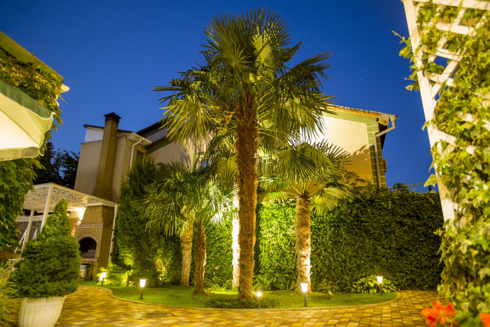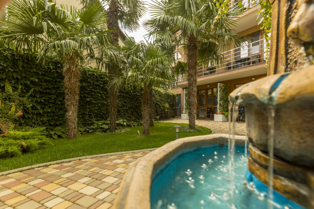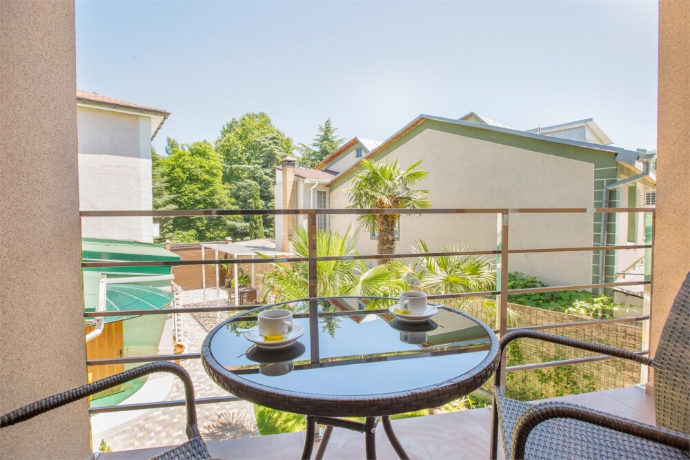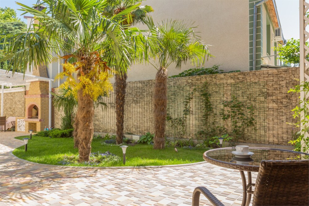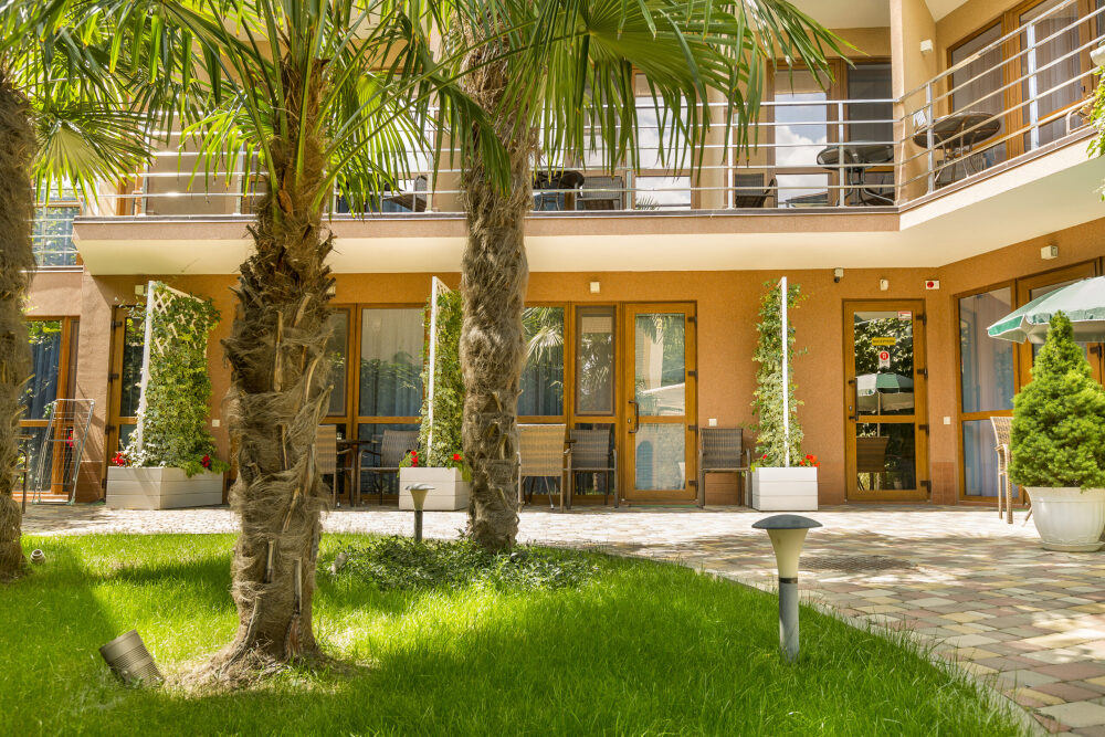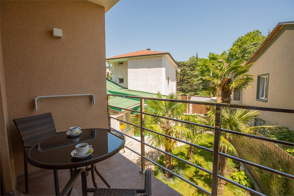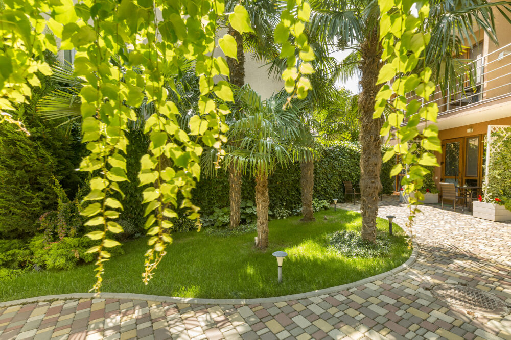 Наша территория располагает ландшафтной зоной. Гости могут наслаждаться красивым видом с балкона на зеленые оазис с пальмами.