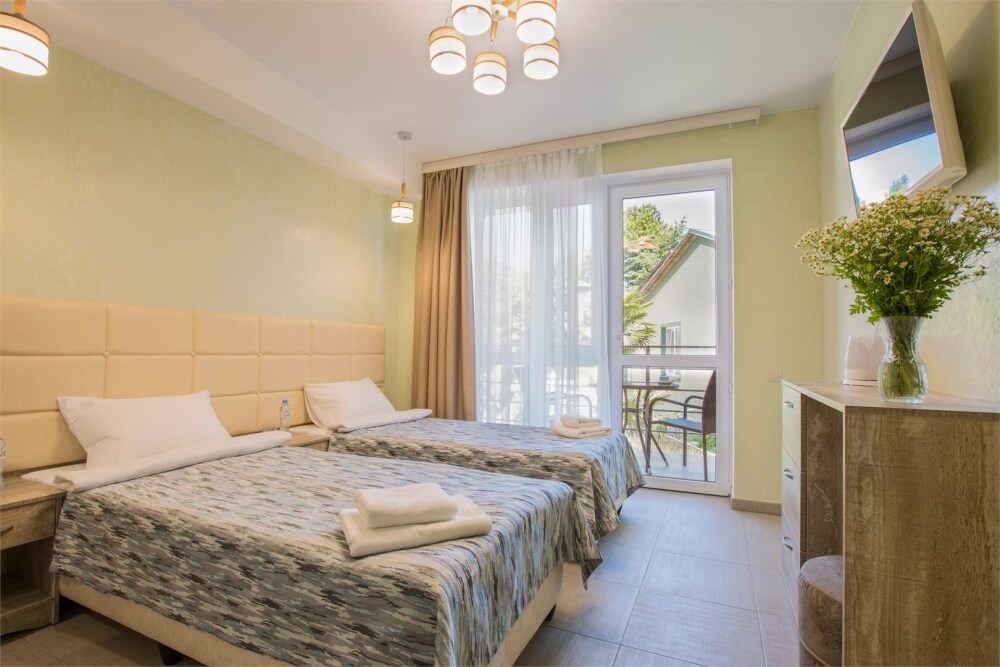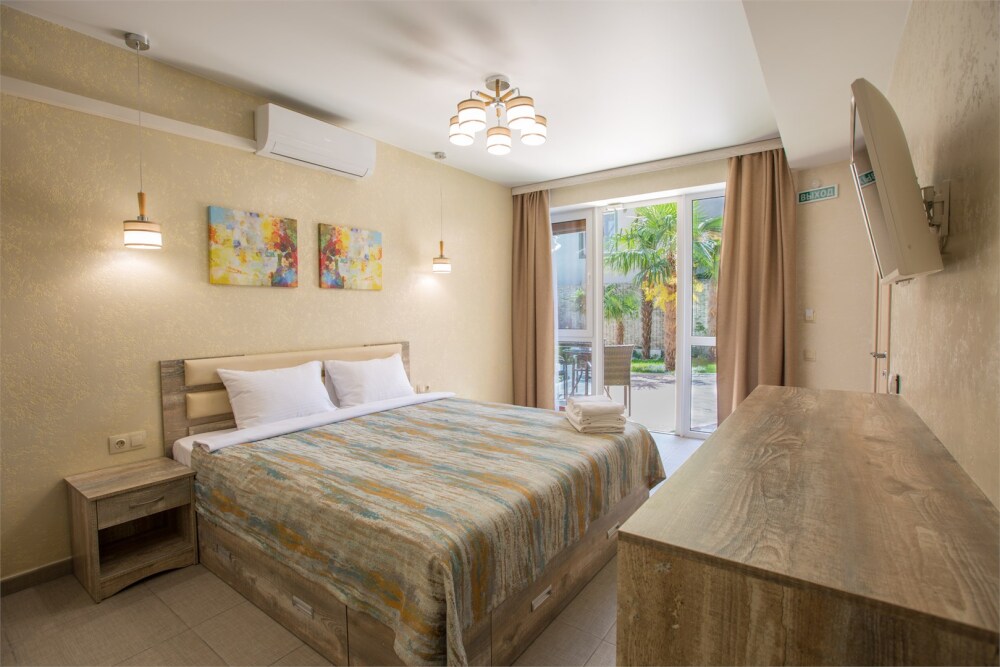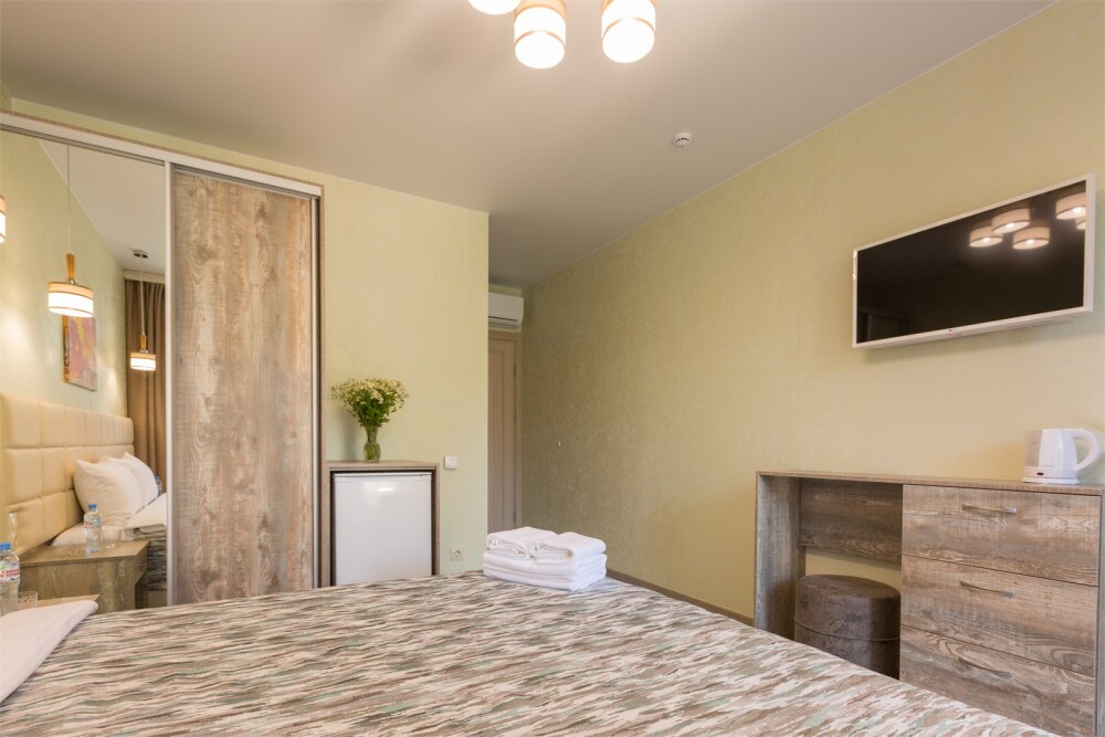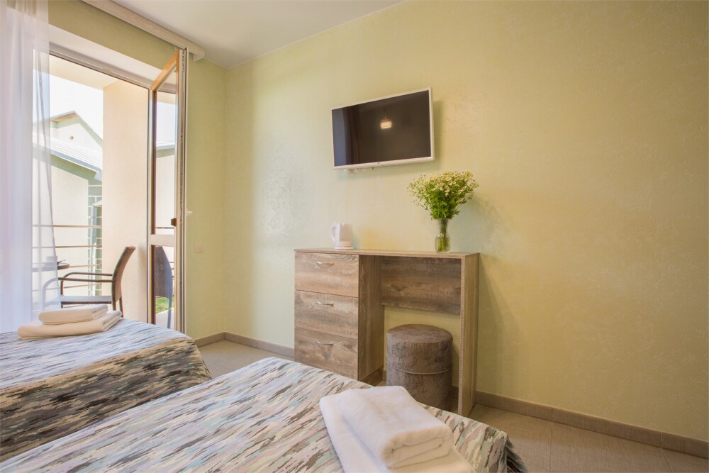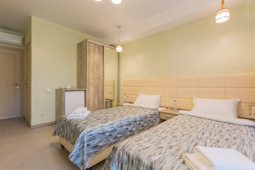 Наши номера оборудованы системой кондиционирования и всеми удобствами для комфортного отдыха и проживания. Каждый номер включает: wi-fi, кондиционер, кабельное телевидение, душ, фен, чайник, холодильник.