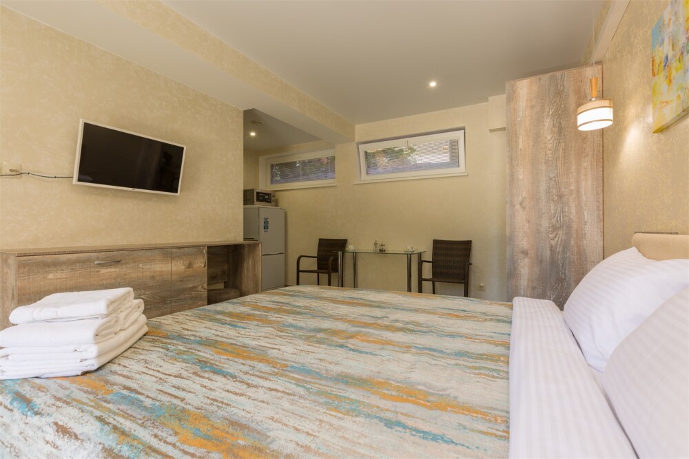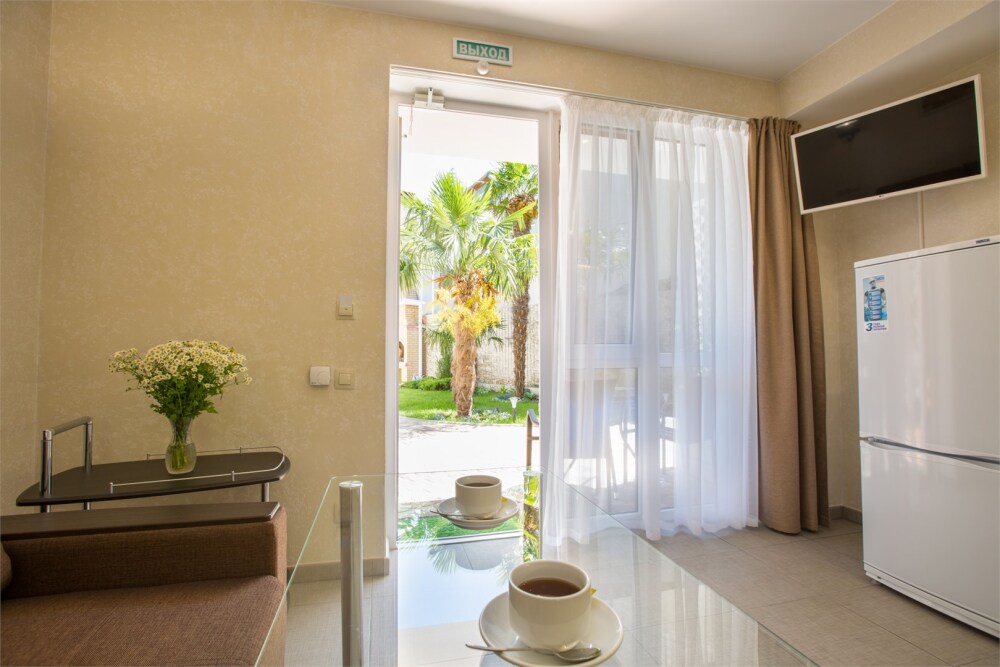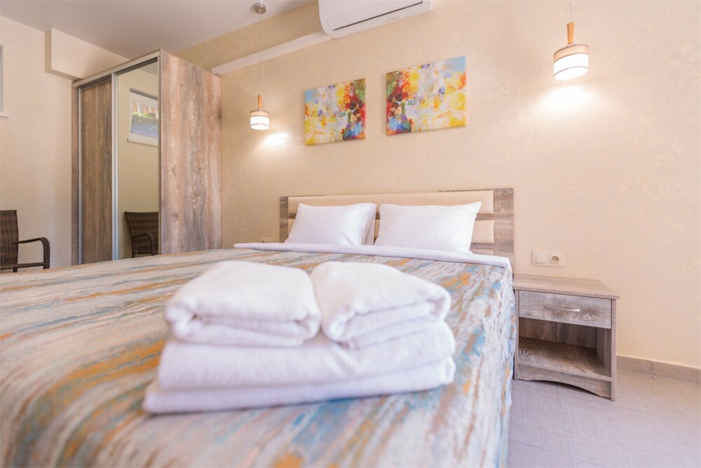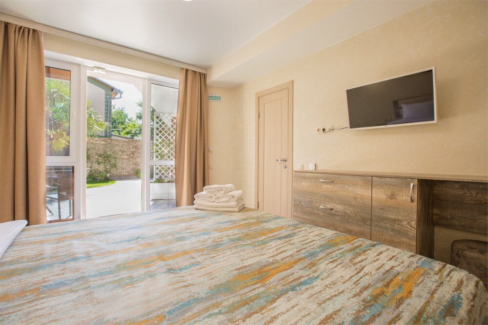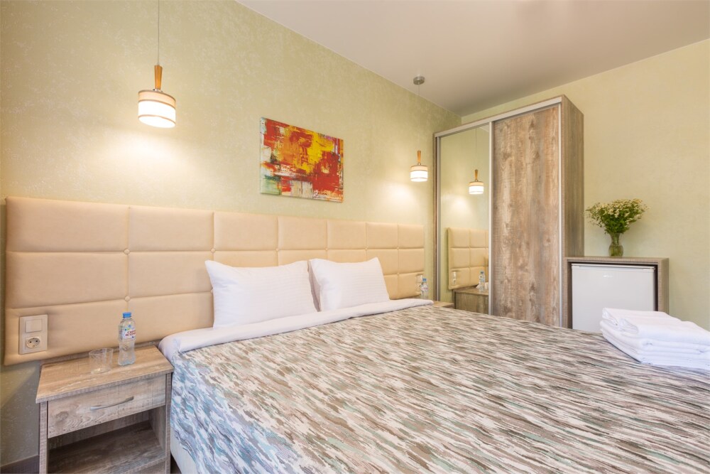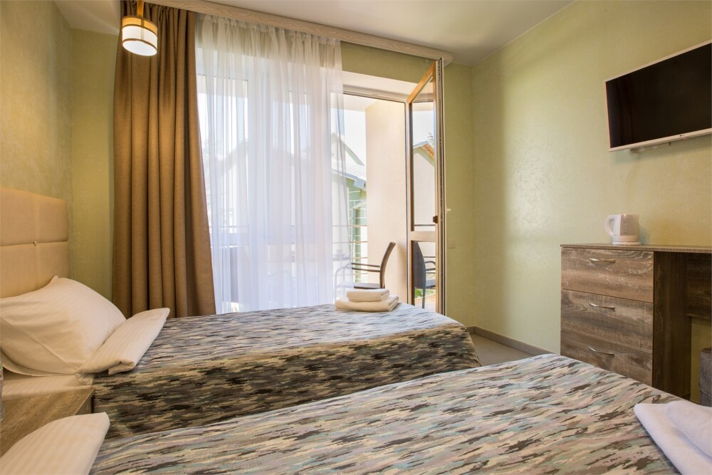 Наши номера оборудованы системой кондиционирования и всеми удобствами для комфортного отдыха и проживания. Каждый номер включает: wi-fi, кондиционер, кабельное телевидение, душ, фен, чайник, холодильник.