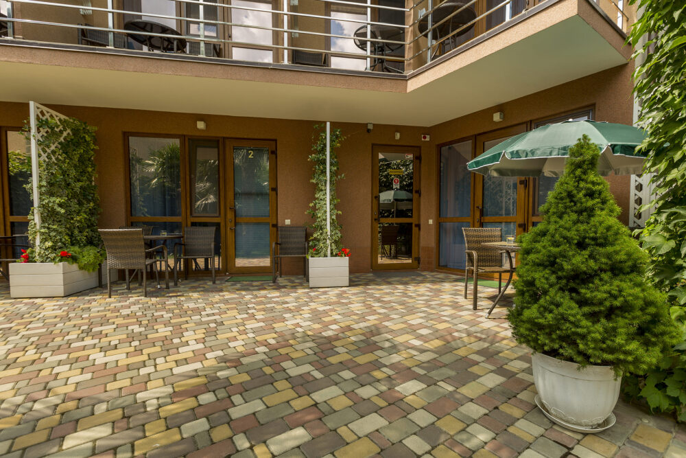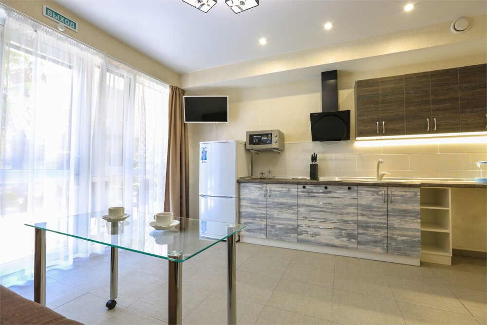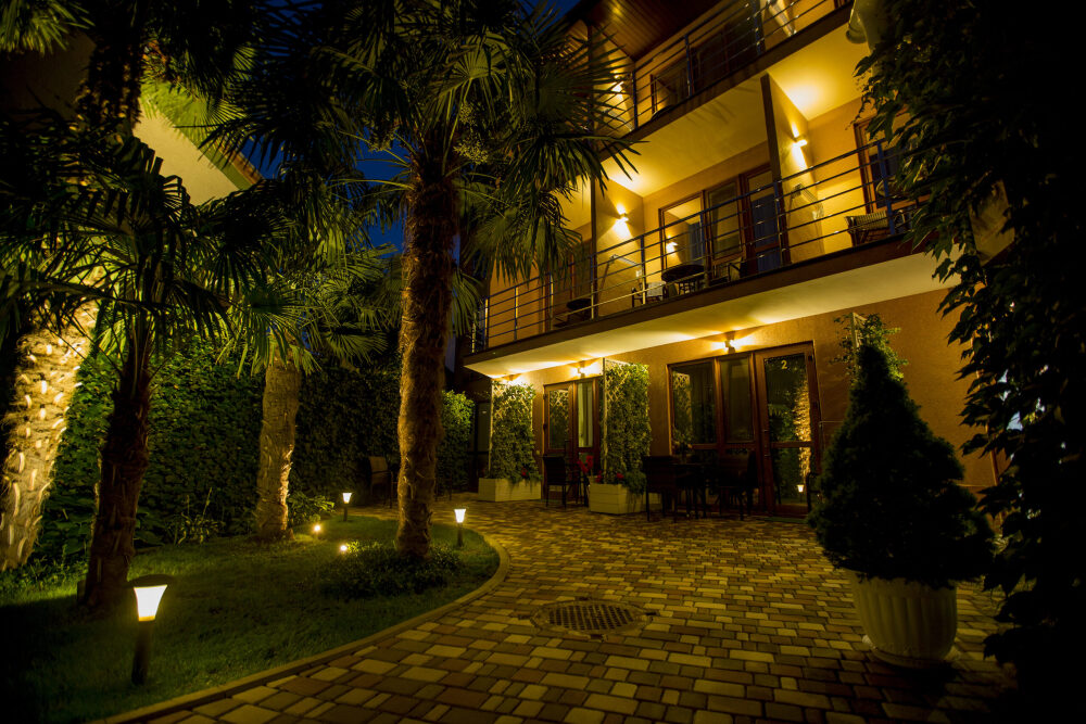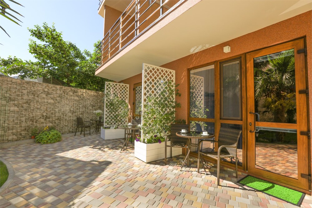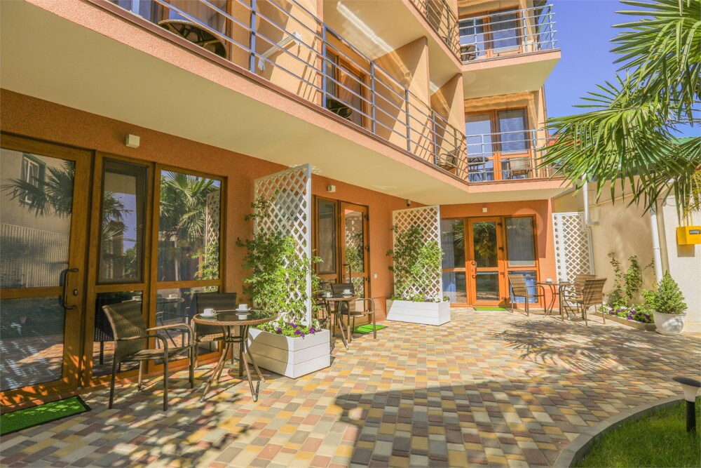 В шаговой доступности расположены центральная набережная 900 м, автовокзал 350 м, продовольственный рынок и магазины 100 м, банк, аптека. Благодаря удобному расположению, Вы без труда найдете для себя все, что необходимо для отдыха. Мы заботимся о своих гостях, создавая приятную атмосферу отдыха и комфорта.