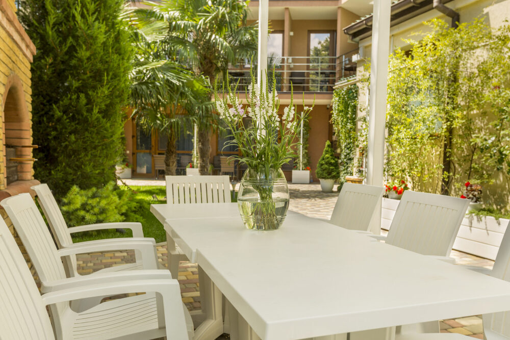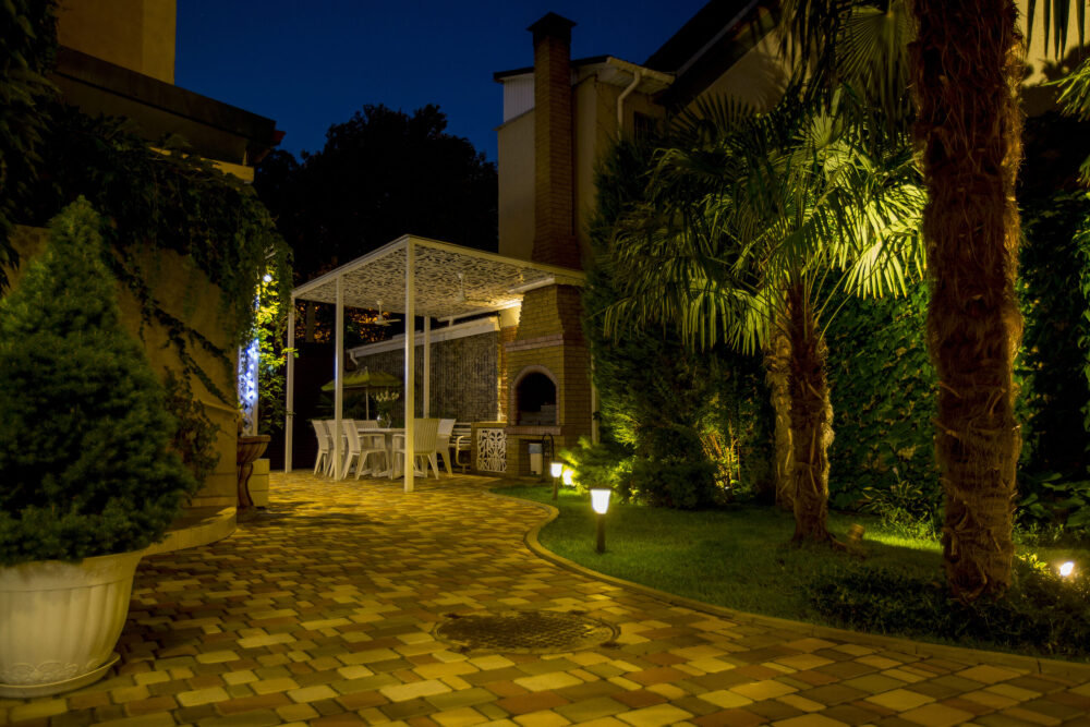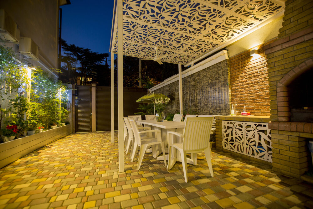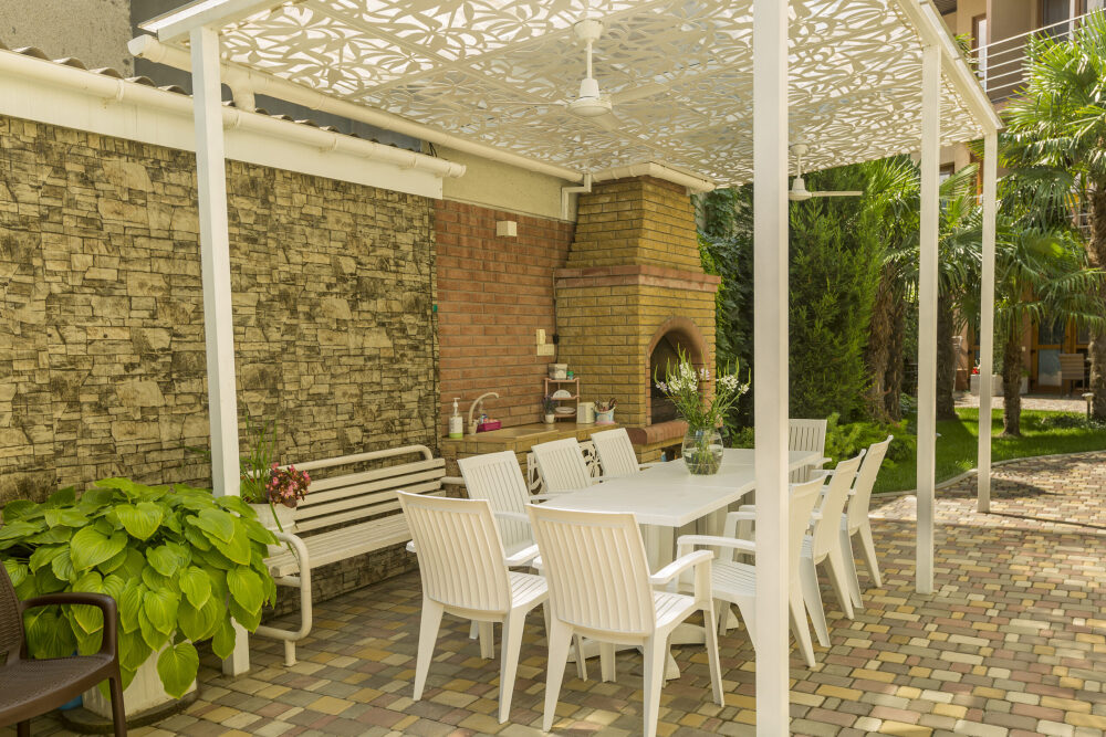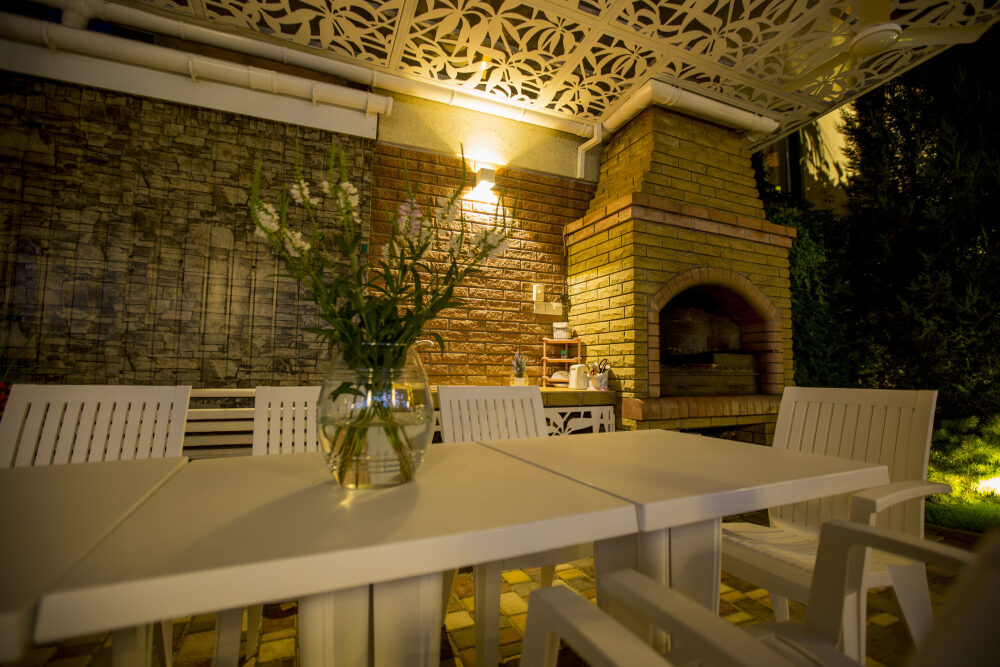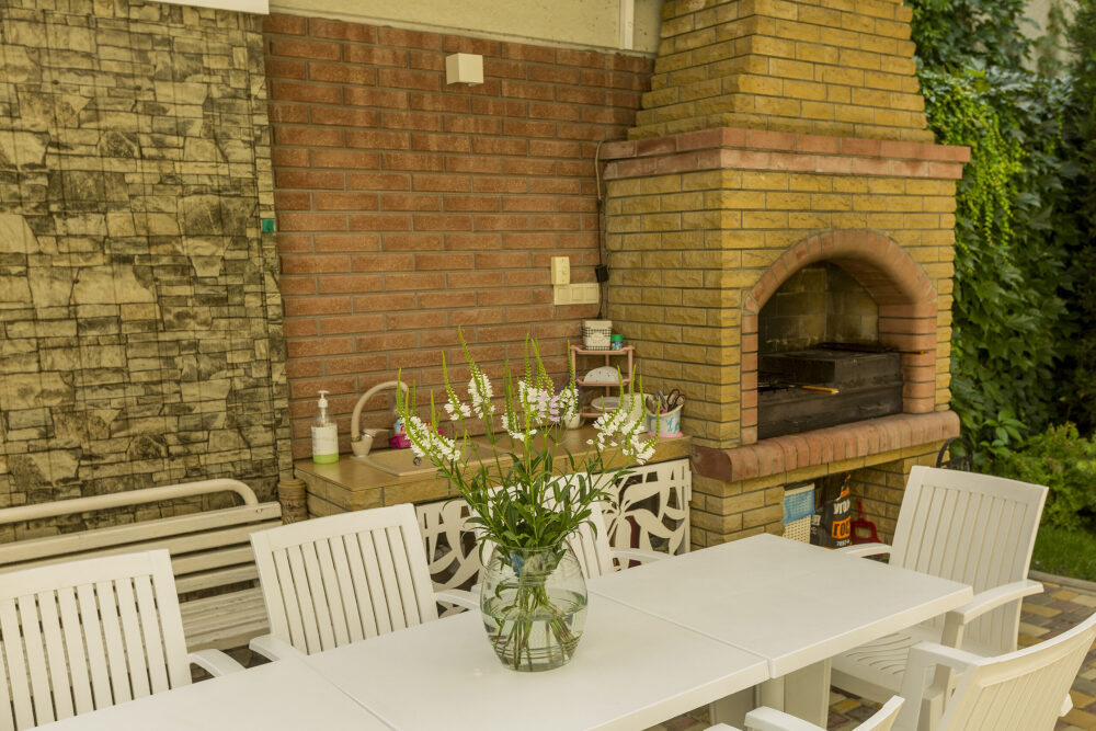 На территории имеется каминная зона барбекю, где на шампурах или решетке можно пожарить свои любимые блюда.