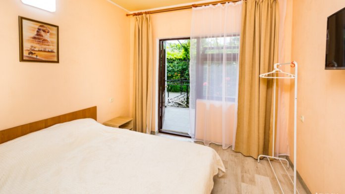 Просторный и светлый номер, с собственной терассой, в огромном дворе, где есть много места, и хорошо с детьми.