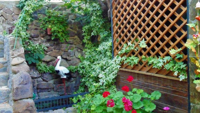 Отдельный дворик увитый виноградом, с мангалом, столиком, где можно отдохнуть.
