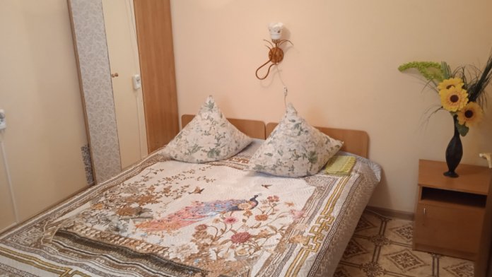 Рядом кухня. Два телевизора. Можно поставить дополнительно кровать, будет на четверых.