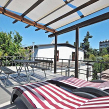 Терраса на крыше с лежаками, столом и стульями. Третье доп. место евро-раскладушка.