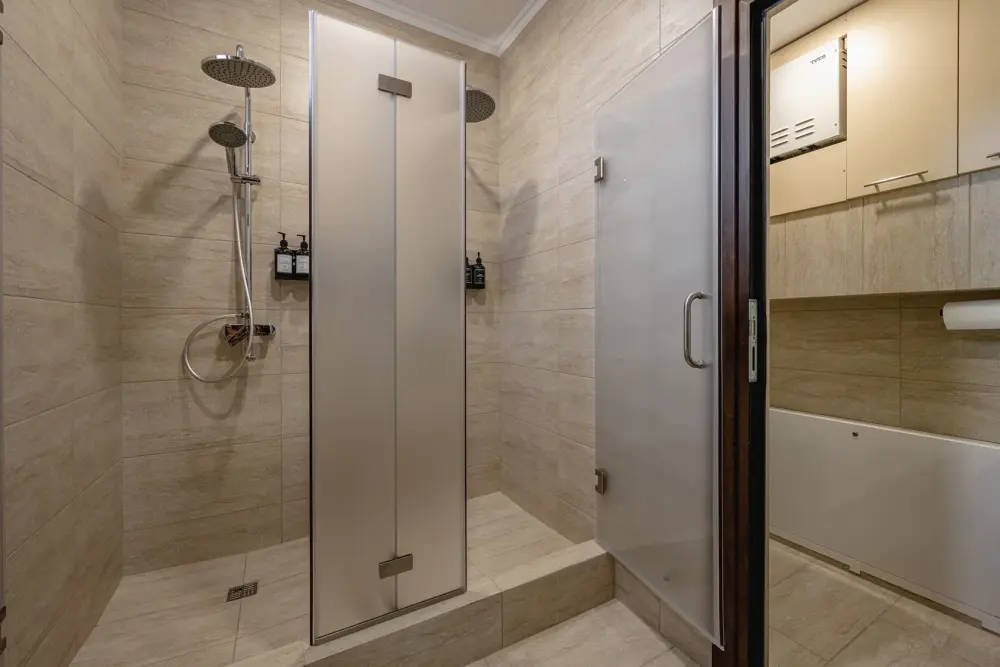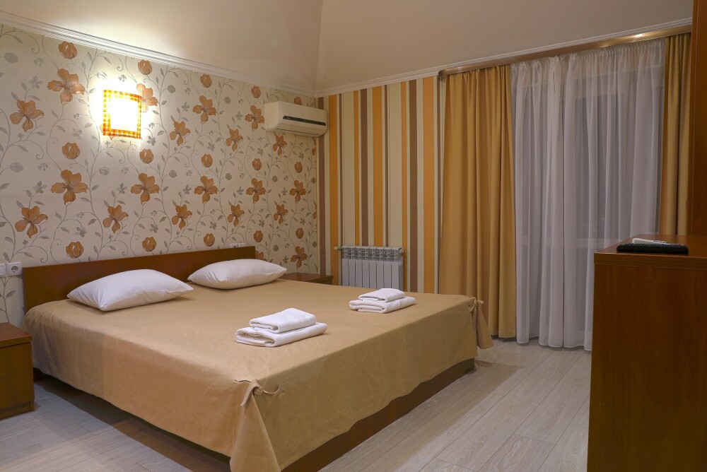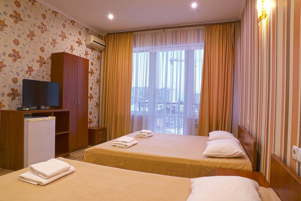 В номере есть кондиционер, холодильник, телевизор, wi-fi, фен, полотенца, стол, тумбочки, шкаф-гардероб. Санузел совмещенный с душевой кабинкой.