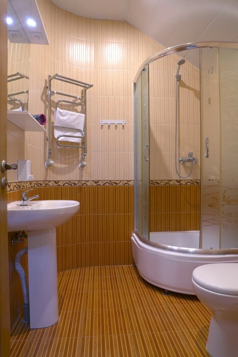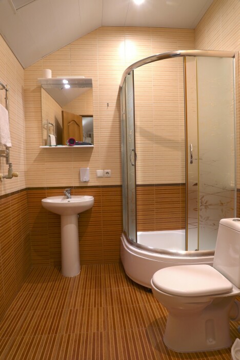 В номере есть холодильник, телевизор, wi-fi, фен, полотенца, стол, тумбочки, шкаф-гардероб. Санузел совмещенный с душевой кабинкой.