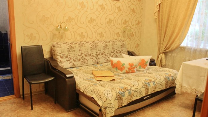 Отдельный номер в частном доме с видом на сад. В комнате большой двухспальный диван, отдельный свой санузел, кондиционер, телевизор, Wi-Fi. Дополнительное место - кровать-раскладушка.