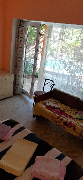 Мы предлагаем Вам комфортабельные 2,3,4-местные номера со всеми удобствами (туалет, душ, телевизор) в центральном районе поселка с расстоянием до моря 400 м по тенистой кипарисовой аллее.