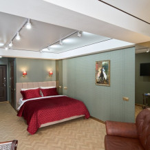 Спальня с одной двуспальной кроватью, раскладным диваном. Подойдет для размещения одного или двоих взрослых с возможностью предоставления дополнительного места.