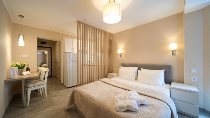 В апартаментах предусмотрена двуспальная кровать и одно дополнительное место, что делает их отличным выбором как для пары, так и для семьи с ребенком.