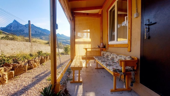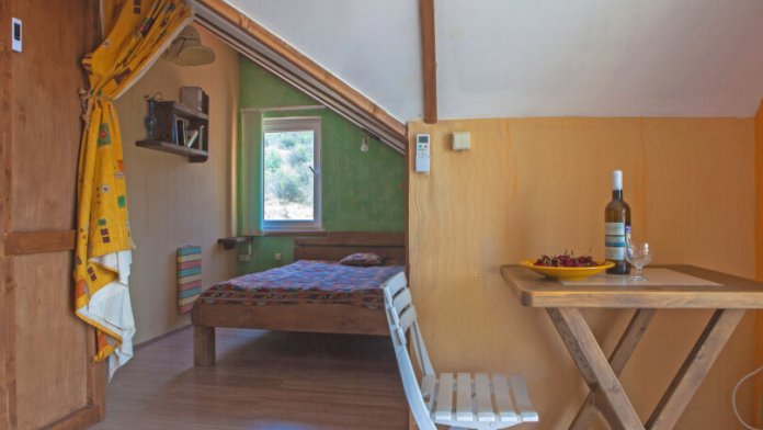 Номера - это студии с мини-кухней (чайники электрический и заварочный, гейзерная кофеварка, кастрюли, сковорода). В каждом номере санузел с душем (полотенца, туалетные принадлежности), отопление, кондиционер. Холодная, горячая вода постоянно. Питьевая вода -бесплатно на террасах. Wi-Fi 50 Мб/сек. Льняное постельное белье. Ортопедические матрасы.