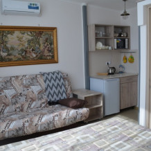 12 номеров расположены на трех этажах. На второй и третий этажи ведет лестница. Все номера оснащены кондиционерами, холодильниками, телевизорами с плоским экраном, Wi-Fi. В каждом номере встроена мини-кухня с микроволновой печью, чайником, необходимой посудой.