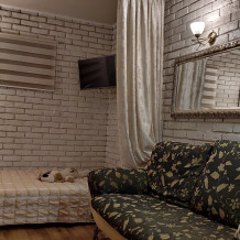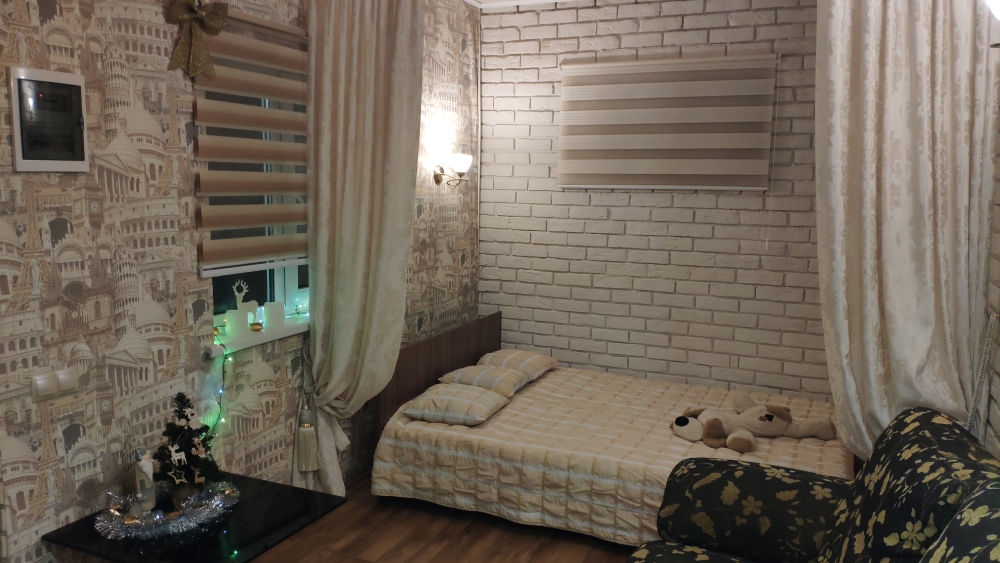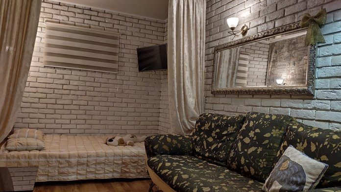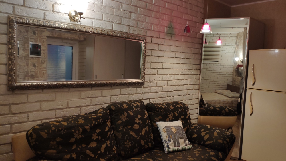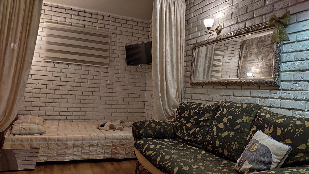 - комната с отделенной шторами спальной зоной, оборудованную кондиционером, итальянский диван, два шкафа, холодильник с морозилкой LG no frost;