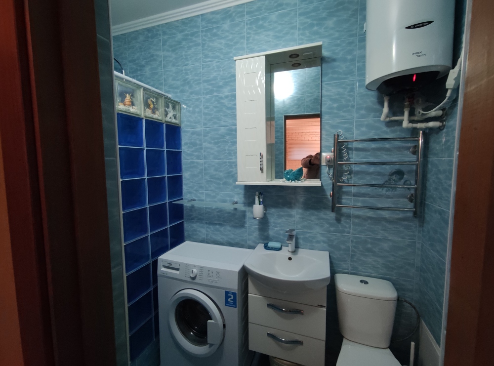 - ванная комната облицованная кафелем с зоной душа, стиральная машинка, эл.полотенцесушитель, санузел, бойлер;