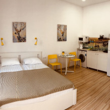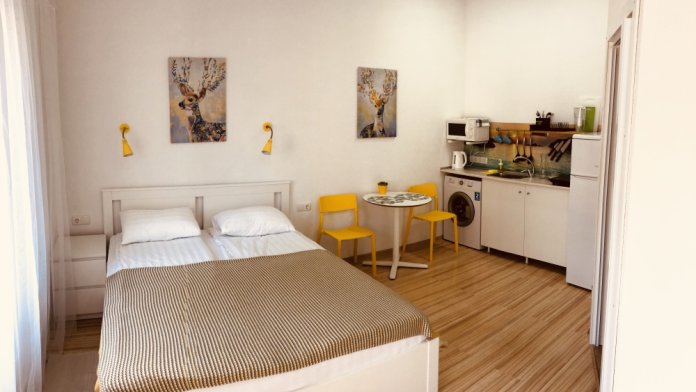 Апартаменты - это комфортные номера квартирного типа в новом здании, которое находится прямо на Лазурной набережной. В просторных номерах есть всё необходимое для комфортного семейного отдыха с детьми.