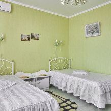 Однокомнатный номер с двумя односпальными кроватями идеально подойдет для проживания двух гостей. В номере кондиционер, телевизор, холодильник, стол, набор посуды и всё, что нужно для комфортного отдыха.