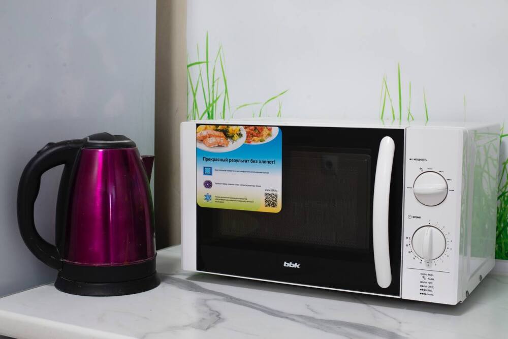В спальне кондиционер, телевизор, небольшой шкафчик, утюг, на балконе стоит холодильник, микроволновая печь, чайник, тумбочка с кухонной посудой (чашки, тарелки, миски для салатов, миски для фруктов, приборы и доска). Стол и три стула. Номер расположен только на третьем этаже с балконом и красивым видом.