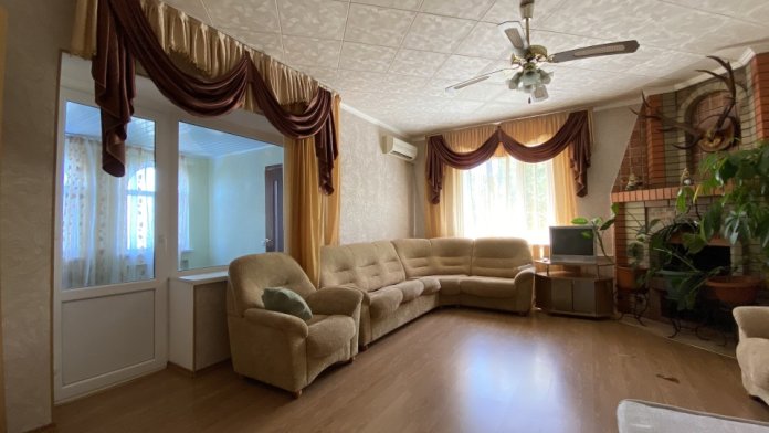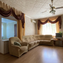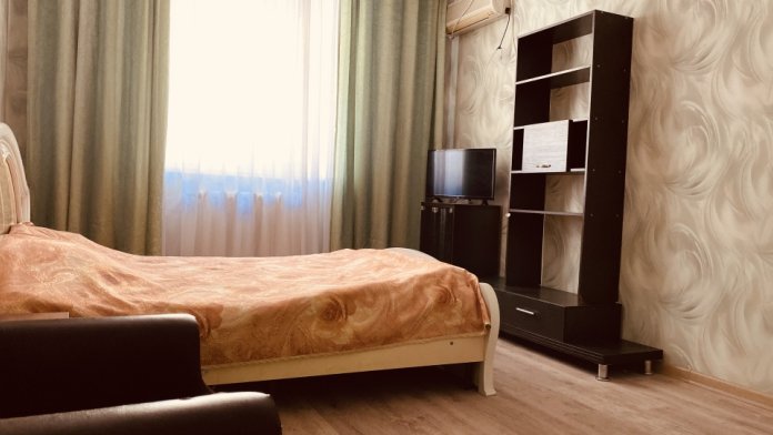 Номер расположен на первом этаже дома, окна обеих комнат выходят во двор. Одна комната оборудована кондиционером и телевизором. Холодильник один на два номера, размещен на общей кухне.
