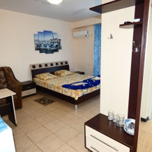 Комфортные однокомнатные номера расположенные в основном четырехэтажном секторе. В комнате есть кондиционер, телевизор, холодильник, санузел совмещенный, двуспальная кровать, раздвижной двуместный диван, гардеробная стойка, посуда. Общие мини-кухни на каждом этаже.