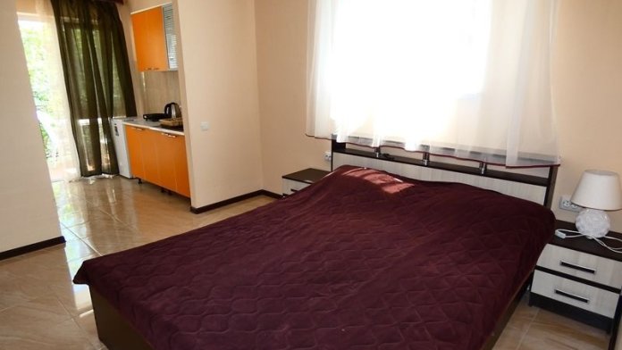Комфортные двухкомнатные номера расположенные на первом и втором этаже (закрытого) сектора. В комнате есть кондиционер, телевизор, холодильник, мини-кухня, 2 двуспальные кровати, 1 раздвижной двуместный диван, гардеробная зона, посуда. На крыше сектора расположена зона отдыха с прекрасным видом на море, вулкан «Кара-Даг» и горы.