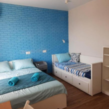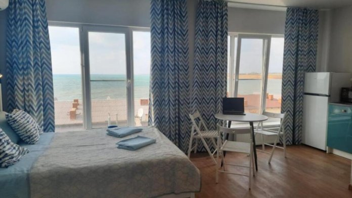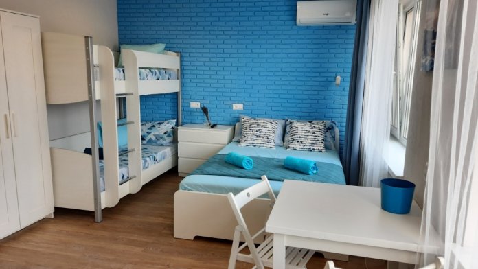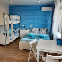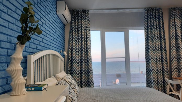 У нас абсолютно новые номера-студии. Вас ждет дизайнерский ремонт 2021 г. в морском стиле, новая мебель и бытовая техника.