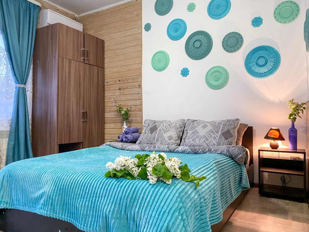В номере: двухспальная кровать размером 140*200, собственный санузел с душевой кабиной, собственная кухня, кондиционер, обеденный стол, шкаф, холодильник, посуда, чайник, газовая плитка, быстрый интернет.