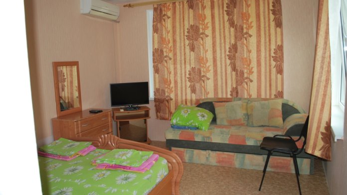Гостевой дом предоставляет туристам для размещения уютные номера с удобствами, хорошим ремонтом, удобной мебелью, кондиционером и телевизором. В номерах оборудована мини-кухня.
