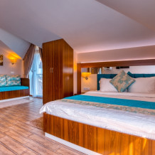 В номере 1 двуспальная кровать и 2 тахты (в которых используются полноценные ортопедические матрасы).
