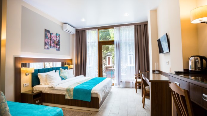 Компактный, но комфортный номер с небольшой балконом и частичным видом на море.