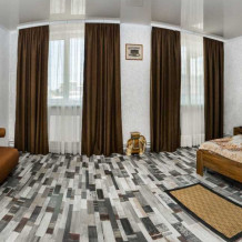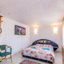 Пляж длинной 2 км на любой вкус (песочек, галька, галька-песок). На территории расположена автостоянка, мангалы, качели, детская площадка, беседки. Все номера просторные и отличаются дизайном (не повторяются).