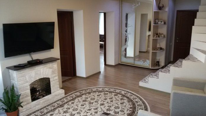 В доме: прихожая,гостиная(проходная),с/у совмещенный,кухня-столовая,спальня.