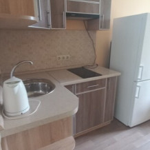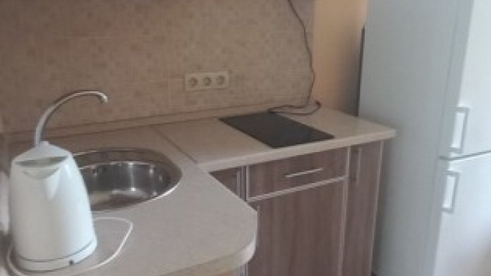 Отдельная полноценная кухня с диваном: стол, плита, чайник, холодильник, набор посуды