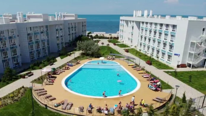 Закрытая благоустроенная территория с охраной, парковкой, открытым бассейном, спортивной баскетбольной площадкой на самом берегу моря с выходом на оборудованный в 2019 году песчано-галечный пляж.