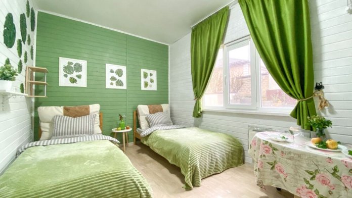 В номере: две раздельные односпальные кровати, которые сдвигаются, новые чистые матрасы, шторы блэкаут, вентилятор, быстрый и бесплатный интернет, санузел с душевой кабиной. Большая терраса или балкон на открытом воздухе. Кухня на 2 номера с посудой, варочной поверхностью, холодильником и чайником и микроволновкой.