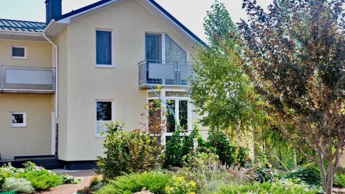 На территории гостевого дома есть бассейн для взрослых и деток. Маленькая детская площадка. Беседки для отдыха, мангал. Красивая территория с цветами и берёзами. Море через дорогу в 600 метрах.