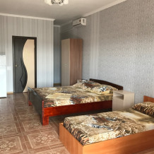 Гостевой дом предлагает к Вашим услугам 14 комфортабельных номеров, расположенных в двухэтажном строении и укомплектованных всем необходимым для отдыха. В каждом номере есть санузел и душевая с горячей и холодной водой, телевизор, кондиционер, холодильник.