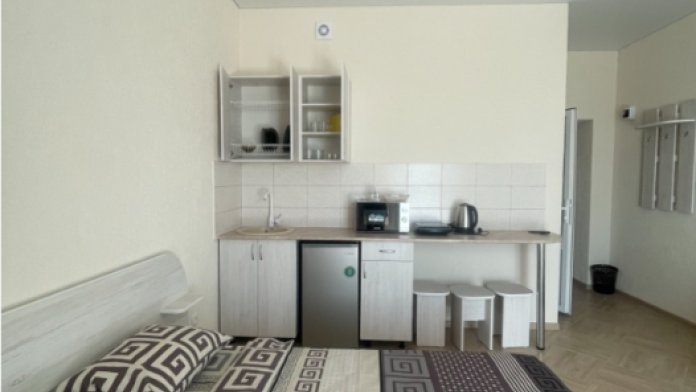 Гостям, для проживания, предлагаются уютные номера-студии со всем необходимым для комфортного отдыха. Во всех номерах есть кухня, оборудованная для самостоятельного приготовления пищи, холодильник, телевизор с плоским экраном,