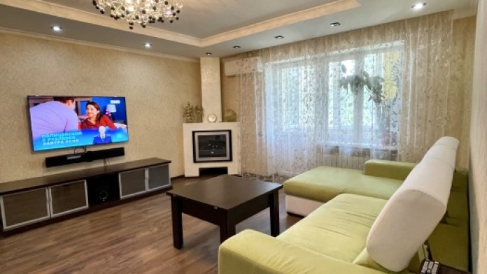 Квартира с дизайнерским ремонтом, оснащена кондиционером, телевизором с плоским экраном и спутниковыми каналами, прекрасно оборудована ,новая мебель , удобная современная ,Планировка квартиры -большая комната и комната чуть меньше ,просторная кухня ,позволяет комфортное размещение семьи из 4 человек,возможно размещение 5 человека за дополнительную плату 500 рублей /сутки. Предоставляются постельные принадлежности,комплект полотенец.