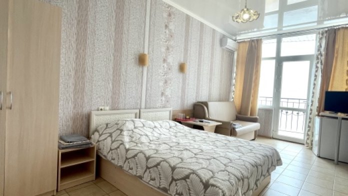 Двухместный просторный номер с видом на море оформлена в современном дизайне, приятной цветовой гамме и сочетает в себе комфорт и домашний уют.