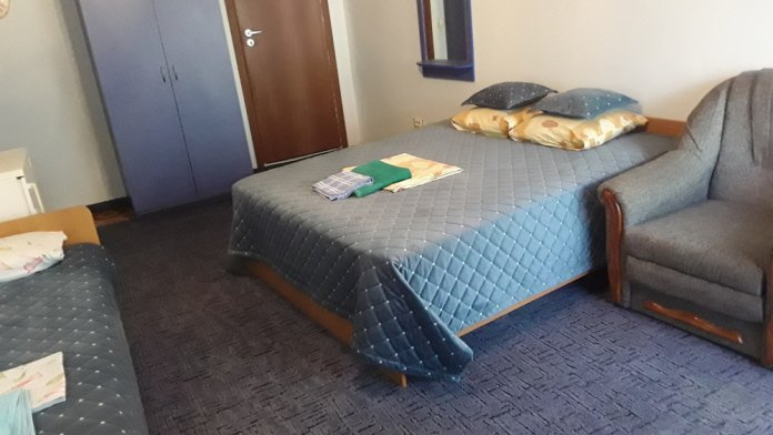 Стандартный 3 местный номер с кухней и балконом. В номере находятся: 1 двуспальная кровать, 2 кресла кровати, холодильник, телевизор, кондиционер, душ с бойлером, чайник.