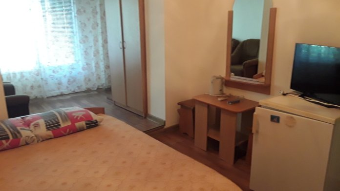 Сдается 2 комнатный семейный номер с 1 двухспальной кроватью, диваном - кроватью, 1 креслом кроватью, в 30 метрах от моря. Аппартаменты имеют всё для комфортабельного отдыха: телевизор, кондиционер, 2 шкафа, журнальный столик, холодильник, чайник, балкон.