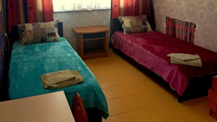 На первом этаже комната с верандой, санузлом и душем. Холодильник, чайник, двуспальная кровать. Кондиционеры на каждом этаже.