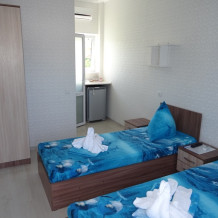 В номере: кондиционер, холодильник, телевизор, wi-fi, санузел и душевая кабина, совершенно новая мебель (две односпальные кровати, прикроватные тумбочки, комод, зеркало), постельное белье, комплект полотенец, набор личной гигиены, необходимая посуда, фен.