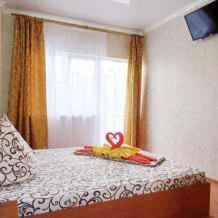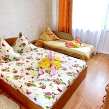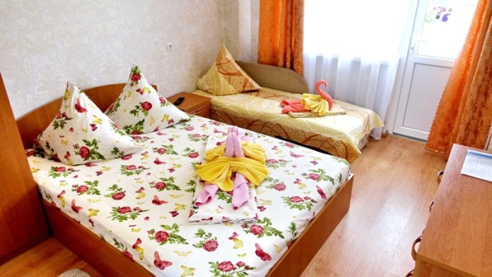Наш дом построен в 2015 году. Номера двух- и трехместные. В каждом номере: кондиционер, холодильник, телевизор, с/у и душевая кабина, совершенно новая мебель, постельное белье, необходимая посуда, фен. Вода горячая и холодная круглосуточно. Утюг и гладильная доска. Интернет Wi-Fi в номерах, Кабельное ТВ - 60 каналов.