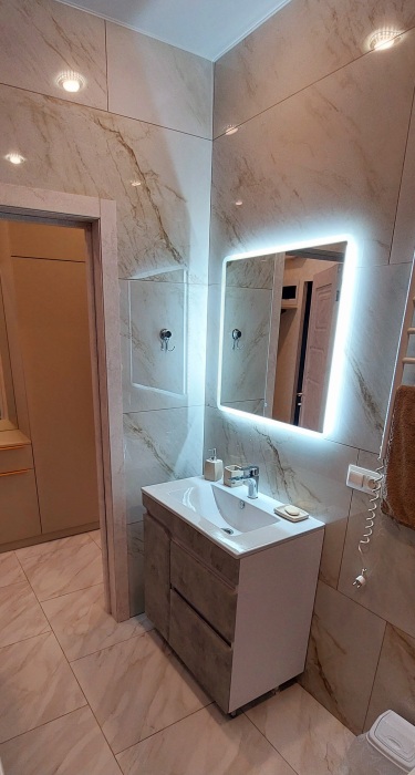 Кондиционер, 2 ТВ в каждой комнате, интернет, стиральная машина, микроволновая печь, фен, утюг, холодильник, все необходимая посуда и постельное белье.