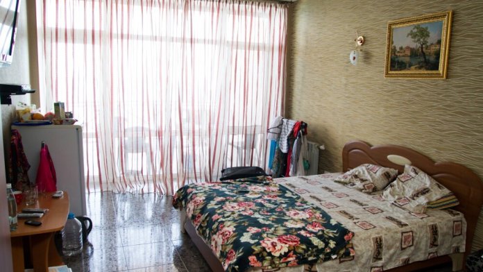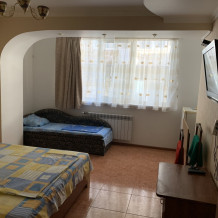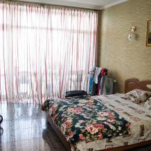Комфортабельный большой семейный номер без балкона, оснащен всеми удобствами. В номере кондиционер, большая двуспальная кровать, раскладная кровать, холодильник, чайник, шкаф для одежды, телевизор. Ванная комната с душем, горячая и холодная вода круглосуточно. Номер рассчитан на проживание до 3 человек.