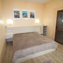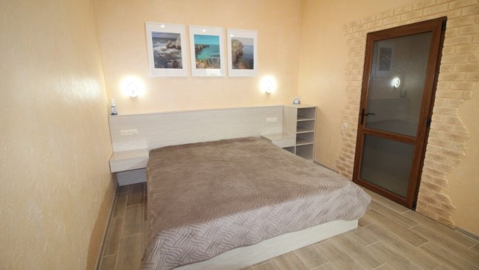 В номере есть: 2 изолированные комнаты, 2 двуспальные кровати с ортопедическим матрасом, 2 односпальных диван-кровать, 2 кондиционера, шкафы и тумбочки в каждой комнате, Wi-Fi, 2 телевизора (кабельное телевидение), современная сантехника и мебель, санузел, набор постельного белья и полотенец для каждого гостя, средства личной гигиены, сушилка для белья. Номер рассчитан на 6 гостей.